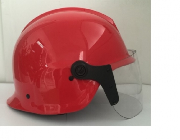 - Cấu tạo, chất liệu: Thân mũ làm bằng nhựa ABS tổng hợp, có kích thước 296x237x183 mm, bề dày ³ 04 mm, chịu va đập; phía trên đỉnh mũ có lớp vỏ xương sống vuông chạy từ trước ra sau, hai bên thân mũ có cấu tạo lồi ra để bảo vệ tai. Phía trước mũ có kính bảo vệ bằng nhựa Polycarbonate (PC) không màu, bề dày 02 mm, giúp cản bụi, gió, hơi nóng khi chữa cháy. Bên trong thân mủ có lớp xốp bảo vệ bằng chất polystyren dày ³ 20 mm để làm giảm lực va chạm; lớp lót bằng sợi poly dày 02 mm; quai đeo và khóa làm bằng sợi tổng hợp và nhựa Acetic có sức chịu tải, giúp giữ cố định mũ vào đầu khi di chuyển; có thiết bị tăng giảm cỡ đầu để tăng giảm chu vi vòng đầu khi sử dụng.