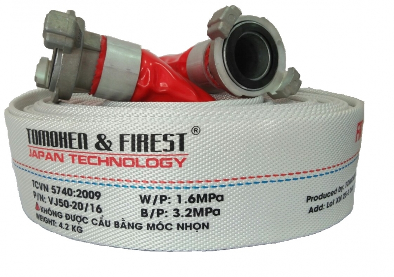 Vòi chữa cháy tomoken D50 x 30m x 1.6Mpa FIREST kèm khớp nối GOST được sản xuất theo công nghệ Nhật Bản đã được chứng nhận kiểm định về Phương tiện Phòng cháy và Chữa cháy theo quyết định số 3820/KĐ- PCCC –P9 của Cục Cảnh Sát PCCC Hà Nội, Việt Nam.